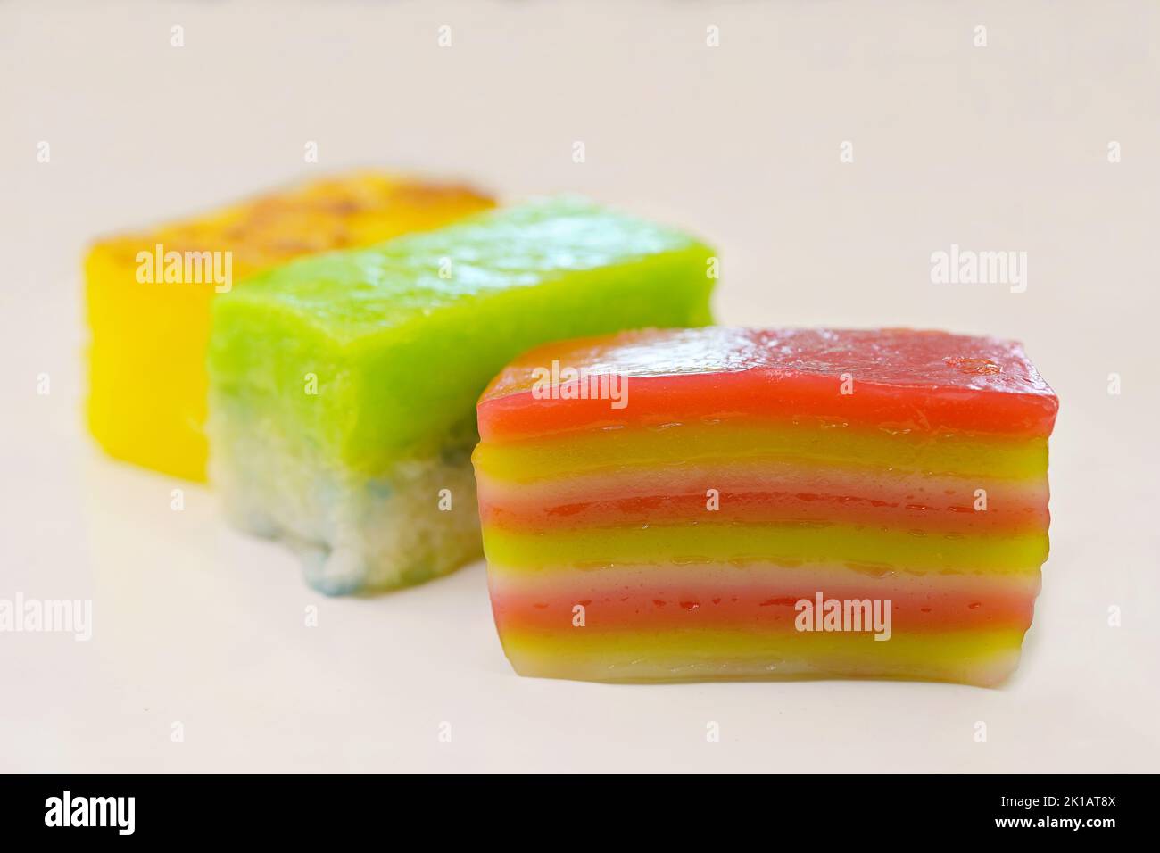Kuih Lapis Traditional Malay Nyonya Sweet Desert White Background